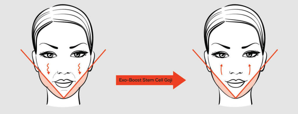 In vivo results for Exo-Boost Stem Cell Goji showed a significant reduction in skin laxity, improved facial oval – jawline and V-shape. [box colour=”gold”].