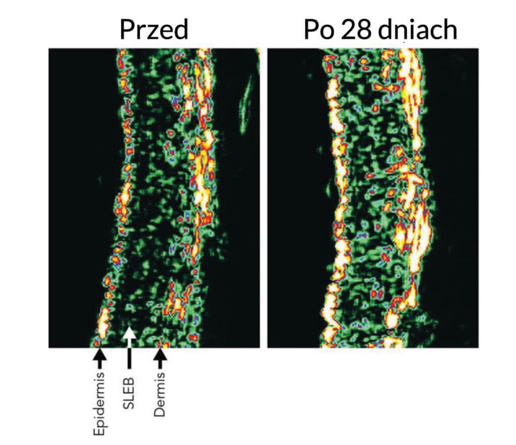 MSC stimulation also prevents volume loss of subcutaneous facial adipose tissue, improves adhesion between the dermal and adipose layers and the mechanical stability of the skin. Exo-Boost Stem Cell Goji helps to restore the correct V-facial contour and optically eliminate the effects of ageing, i.e. tissue flaccidity, skin that is too loose, loss of subcutaneous fatty tissue. The aim is to re-establish the inverted V-shape of the face. The appearance of so-called ‘hamsters’, ‘marionette lines’ and the depth of nasolabial furrows and temporal pits is also improved. Visually, the facial skin is tighter, filled from within and visibly rejuvenated.