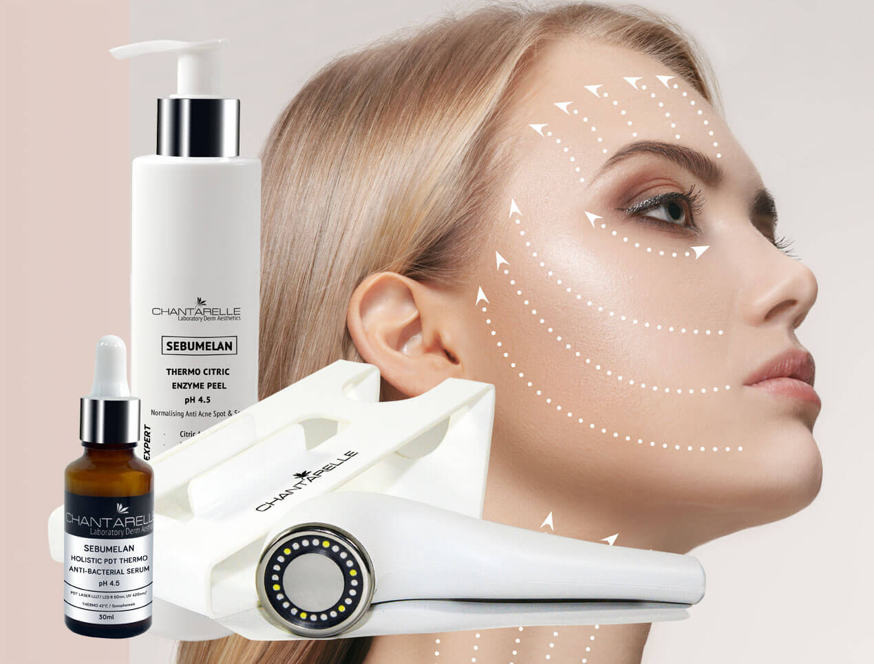 Po aplikacji laserem PDT lub manualnej preparatu fotodynamicznego należy poczekać do jego wchłonięcia, a następnie zaaplikować preparaty z zestawu Thermo-Lifting urządzeniem Thermoled Master®.