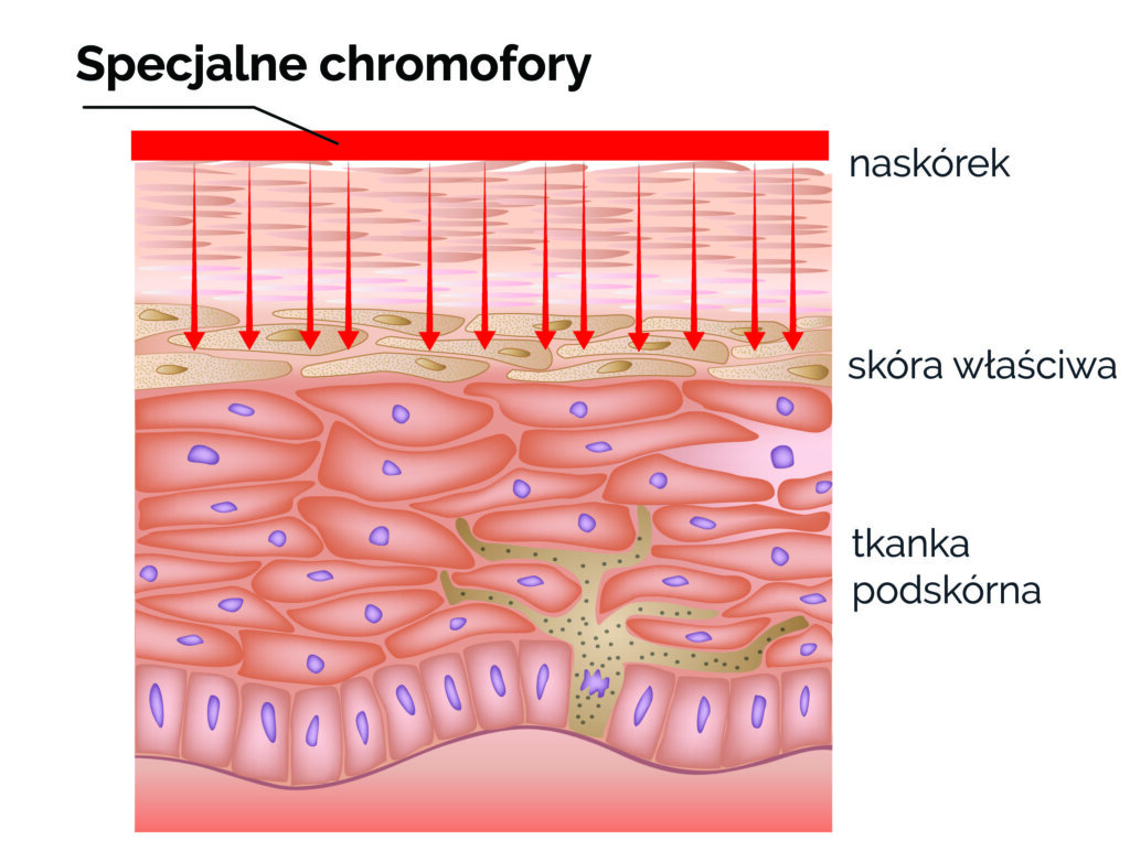 Na skuteczność wzajemnego oddziaływania laser-tkanka zasadniczy wpływ ma długość emitowanej wiązki światła w połączeniu z jej absorpcją przez chromofory zawarte w tkance/dostarczone do tkanki. Odpowiednio dobrane do światła o określonej długości fali chromofory w połączeniu ze składnikami aktywnymi  gwarantują maksymalną absorpcję i wysoką skuteczność skojarzonej techniki działania urządzenia PHOTO-DYNAMIQ®.