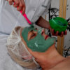 Alginate is a powder-like substance with high porosity, obtained from the cell wall of an alga. During treatment, the powder is mixed with water at a temperature of less than 36 degrees Celsius. Mixed with warmer water it would solidify too quickly. A suspension with the consistency of thick cream is formed, which is applied to the face, neck or décolleté, bust. After a few minutes, the suspension thickens so that it can be pulled off as one ‘rubbery’ patch.