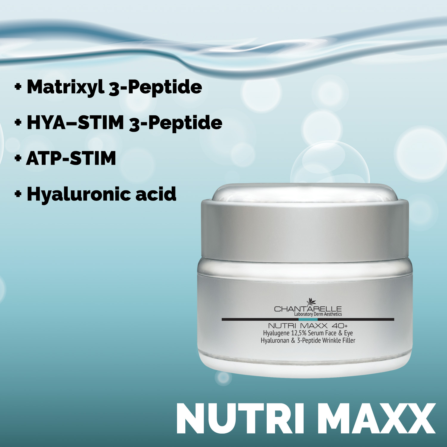 The Nutri Maxx line is a programme for skin regeneration, hydration and nourishment. It plumps out wrinkles from within and slows down the ageing process.