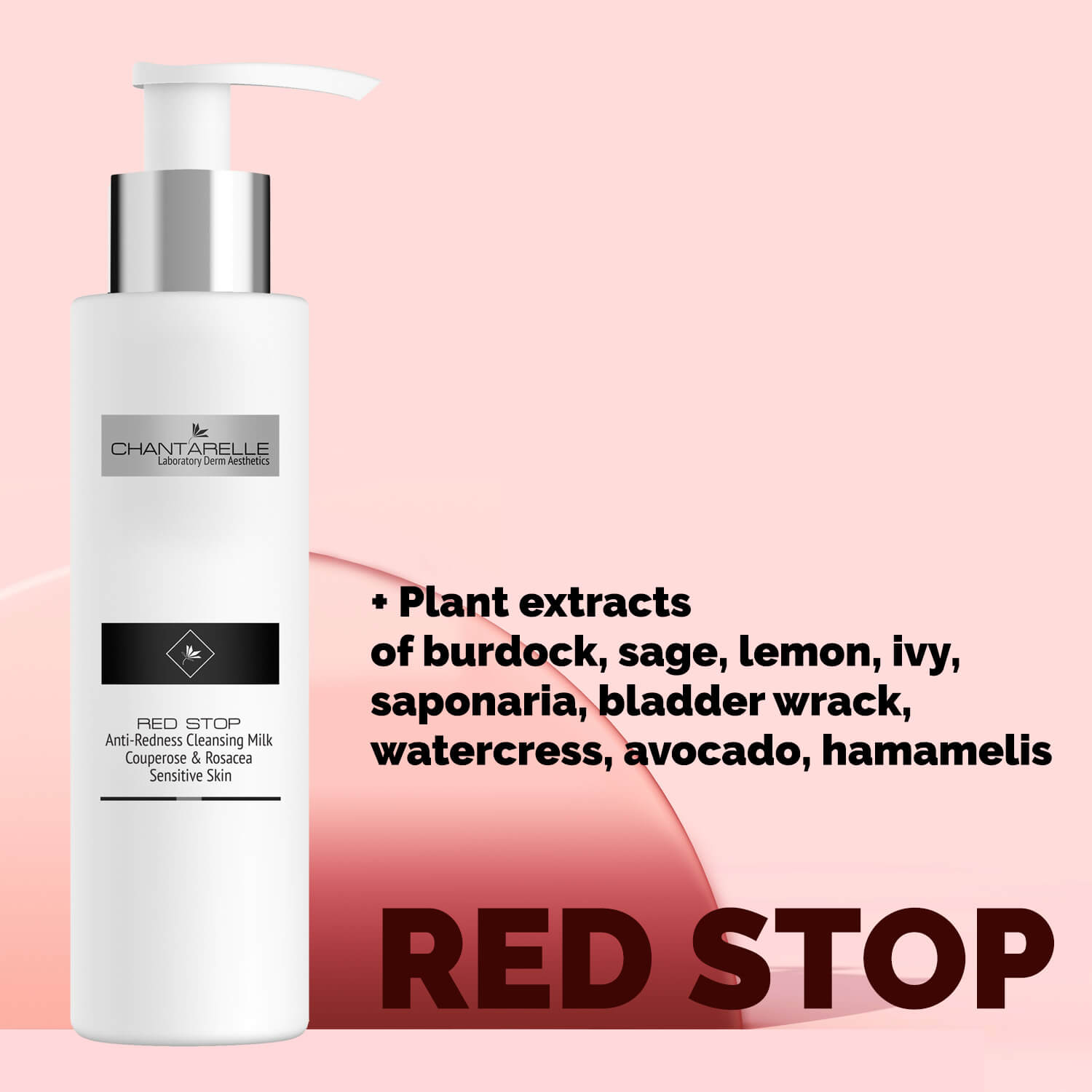 Anti-redness cleansing milk. Designed for removing make-up from vascular, rosacea-symptomatic, sensitive skin,