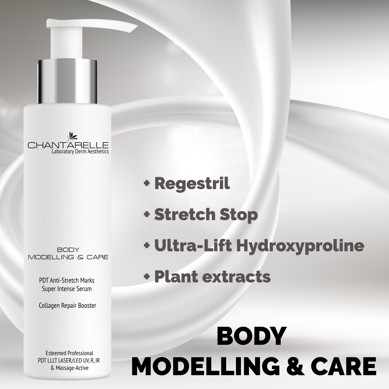 The Body Modelling & Care line was created for body modelling, slimming, cellulite and stretch mark reduction. It gives a visible improvement in skin firmness while reducing skin irregularities and improving skin tone, hydration and other parameters.