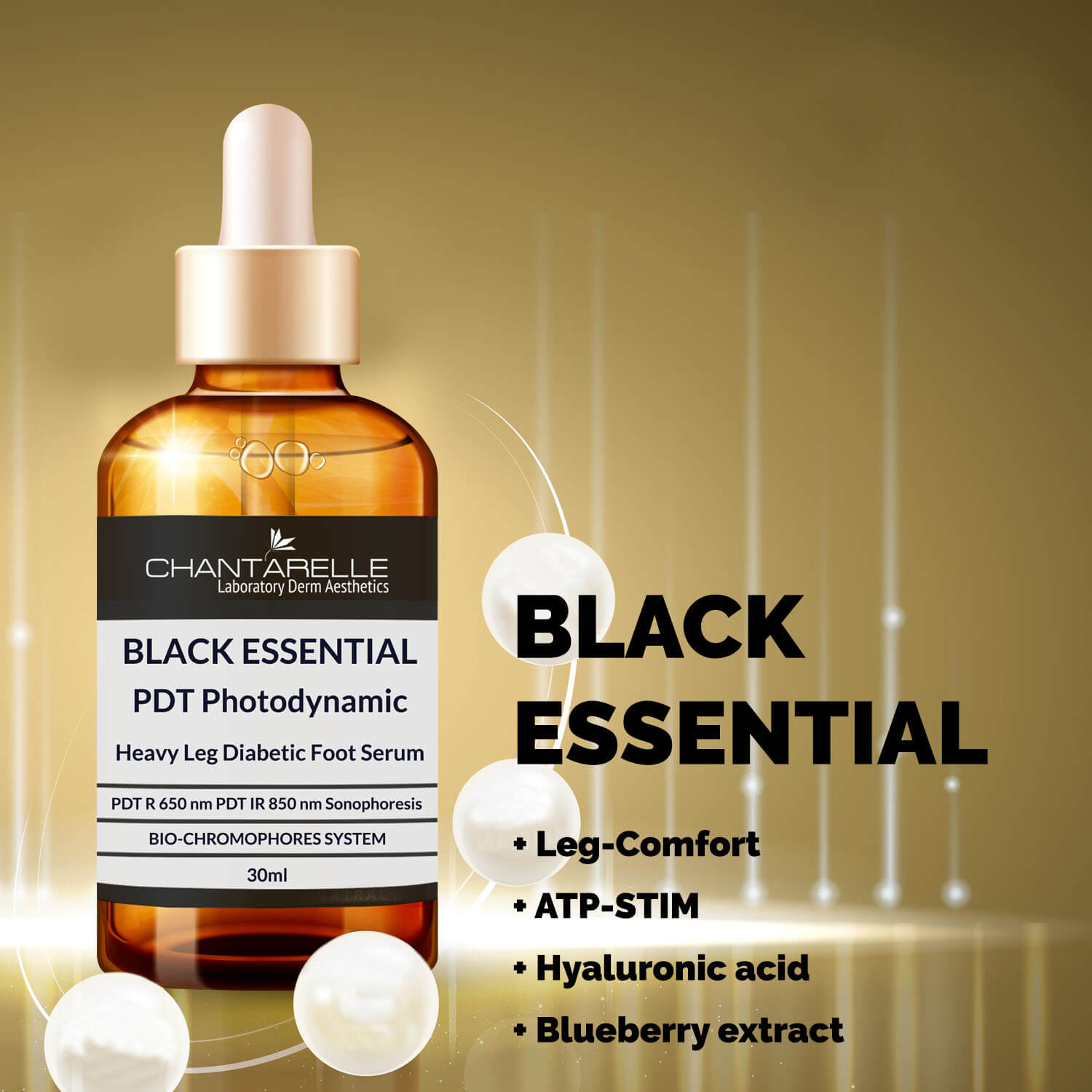 Black Essential’s PDT formulations show the highest efficacy when PDT is applied with the LLLT laser with magnetic field. The laser light acts directly on the energy centres of the cells. It stimulates their metabolism and stimulates them to work intensively. The effect of the treatment is significantly prolonged over time. The magnetic field increases the stimulation effect in the tissues. The synergistic use of laser light and photosensitive preparations, such as PDT Black Essential, guarantees an immediate treatment effect. The active ingredients contained in the PDT Black Essential concentrates act immediately after their application and simultaneously optimise the effect of the laser. This leads to enhanced tissue processes, increased collagen production and skin remodelling. Such rapid tissue renewal and restructuring would not be possible if laser and photoactivators were applied separately.