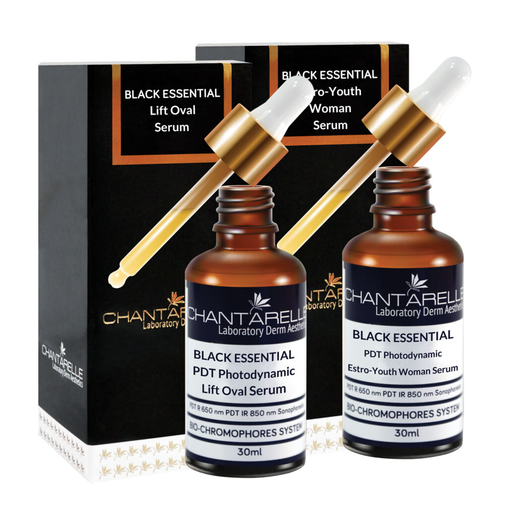 Koncentraty PDT Black Essential umożliwiają specjalistyczne działanie w zakresie zabiegów estetycznych dla skóry kobiet i mężczyzn.