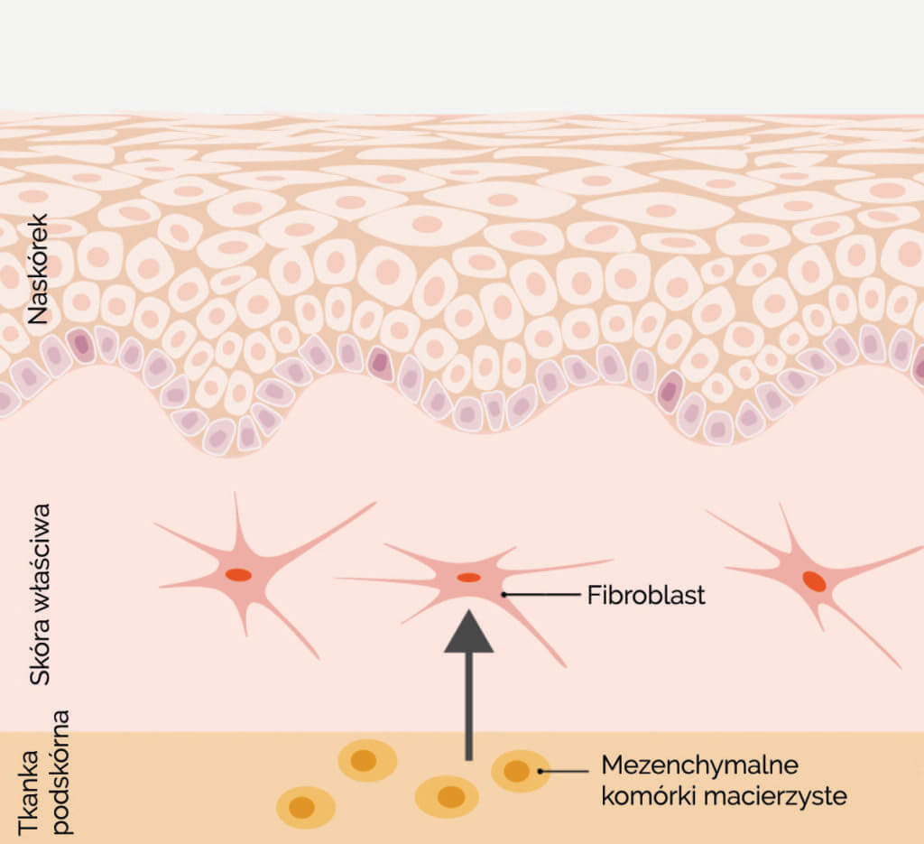 Let’s start by explaining a concept related to exosomes. Mesenchymal stem cells (MSCs) are cells located, among others, in the subcutaneous fatty layer of the skin. They are cells that improve and accelerate various regenerative processes, such as wound healing. How does this happen? Intercellular signalling just happens from the MSCs to the fibroblasts, thanks to vesicles called exosomes.
